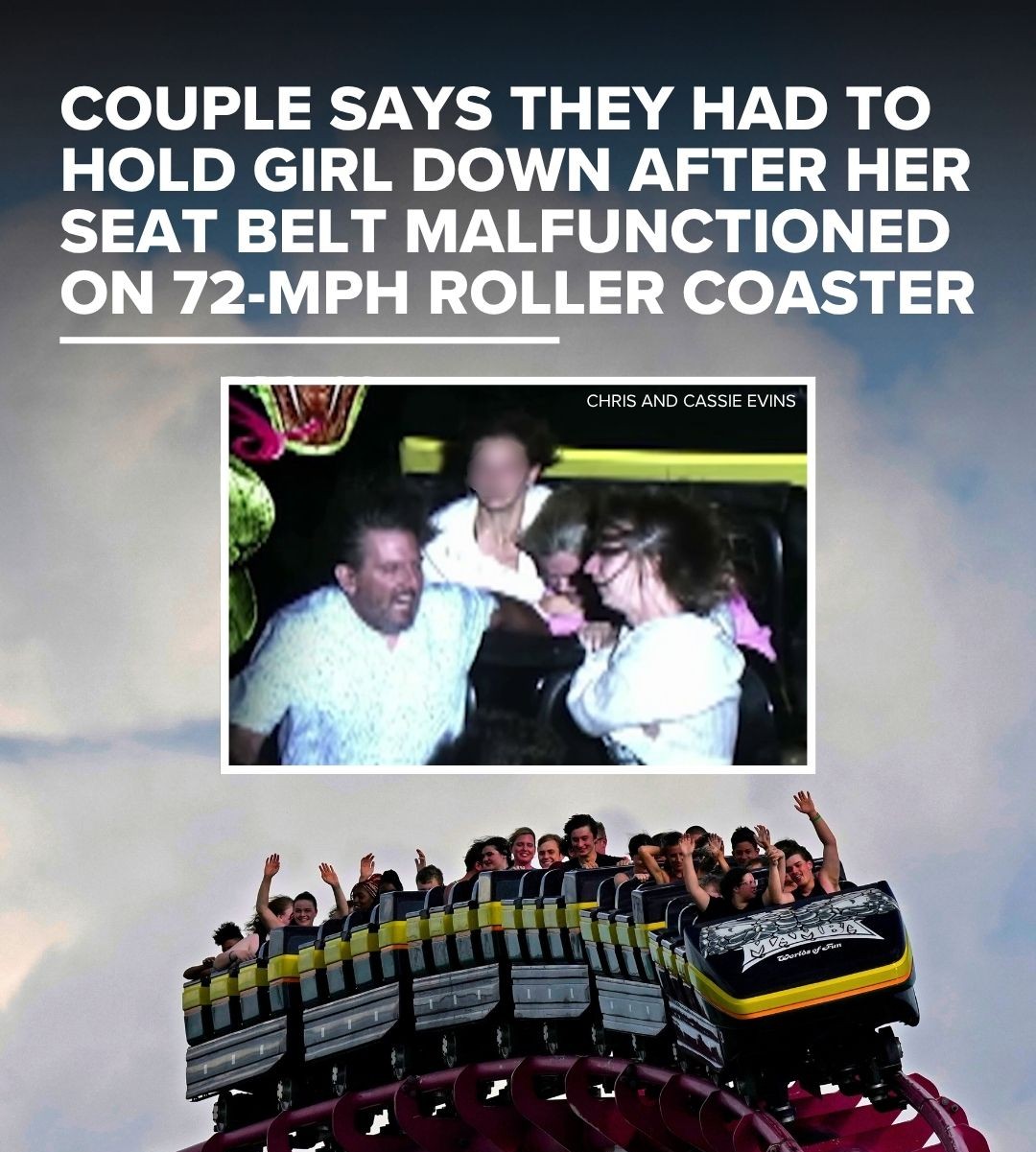 Evins and his wife held onto the girl and her friend next to her as the 205-foot-tall coaster went on.