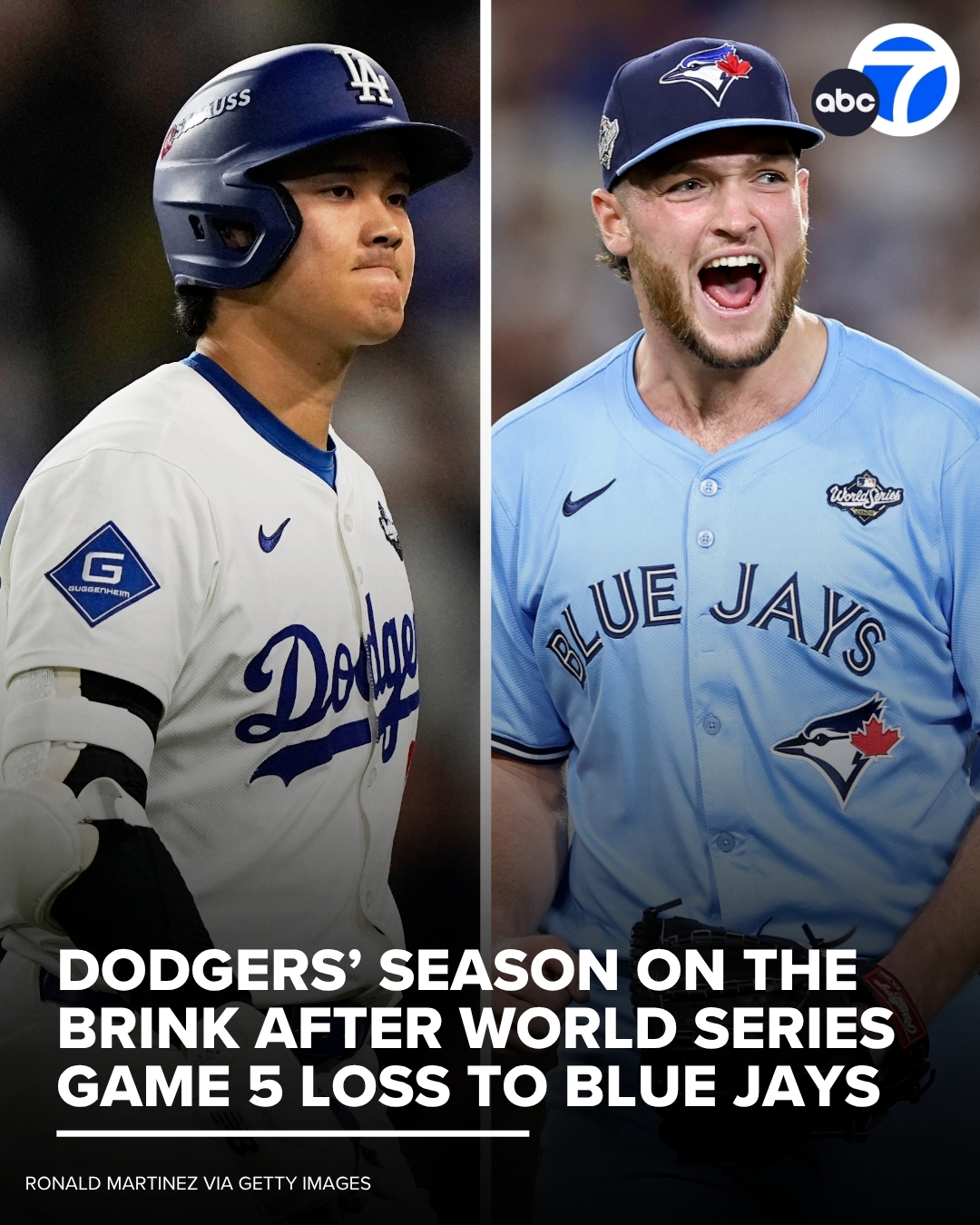 Toronto beat Los Angeles 6-1 in Game 5 of the World Series Wednesday night and are one win away from winning the championship.