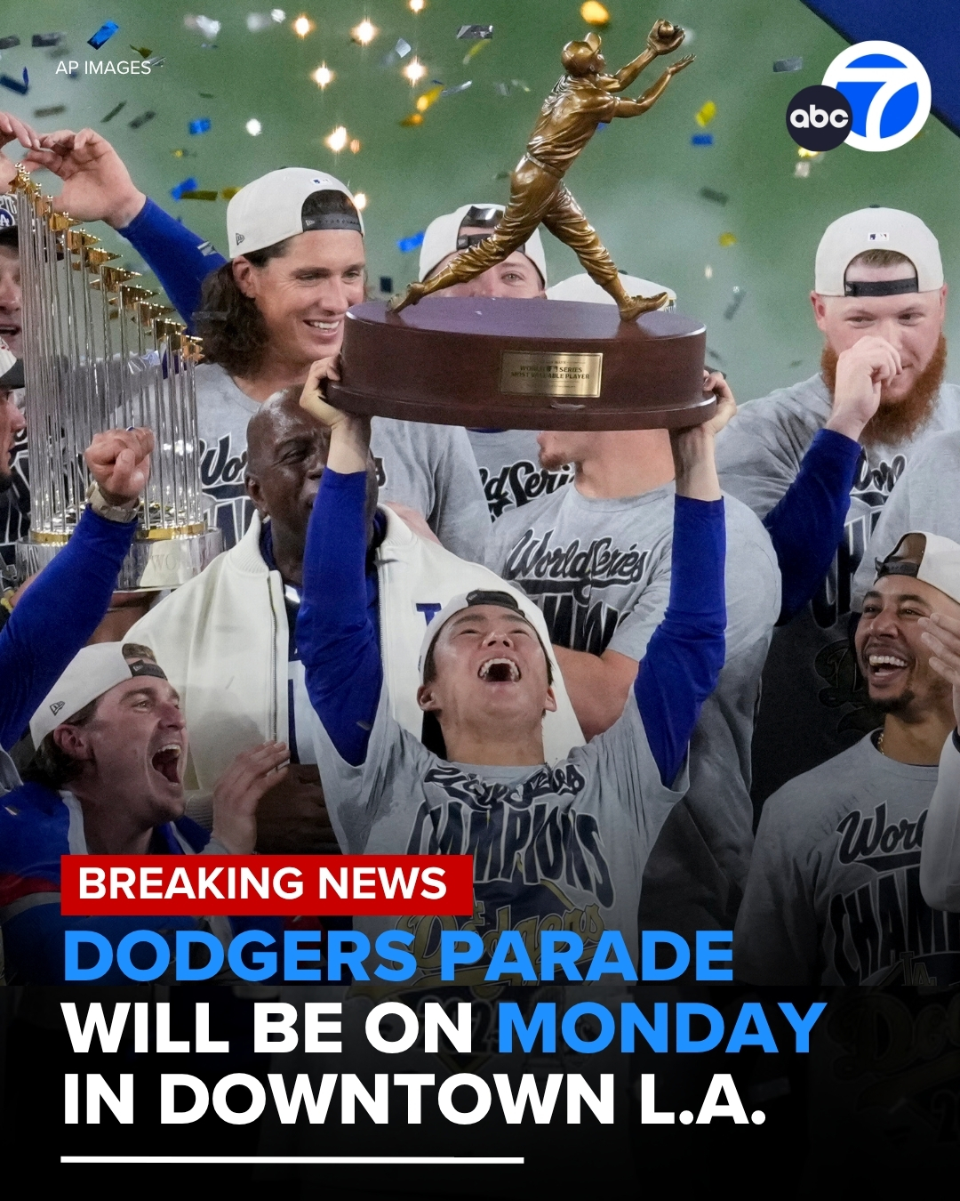 The Dodgers parade will be the morning of Monday, Nov. 3 starting at 11 a.m. The parade itself is expected to last about 45 minutes, followed by a special ticketed event at Dodger Stadium.