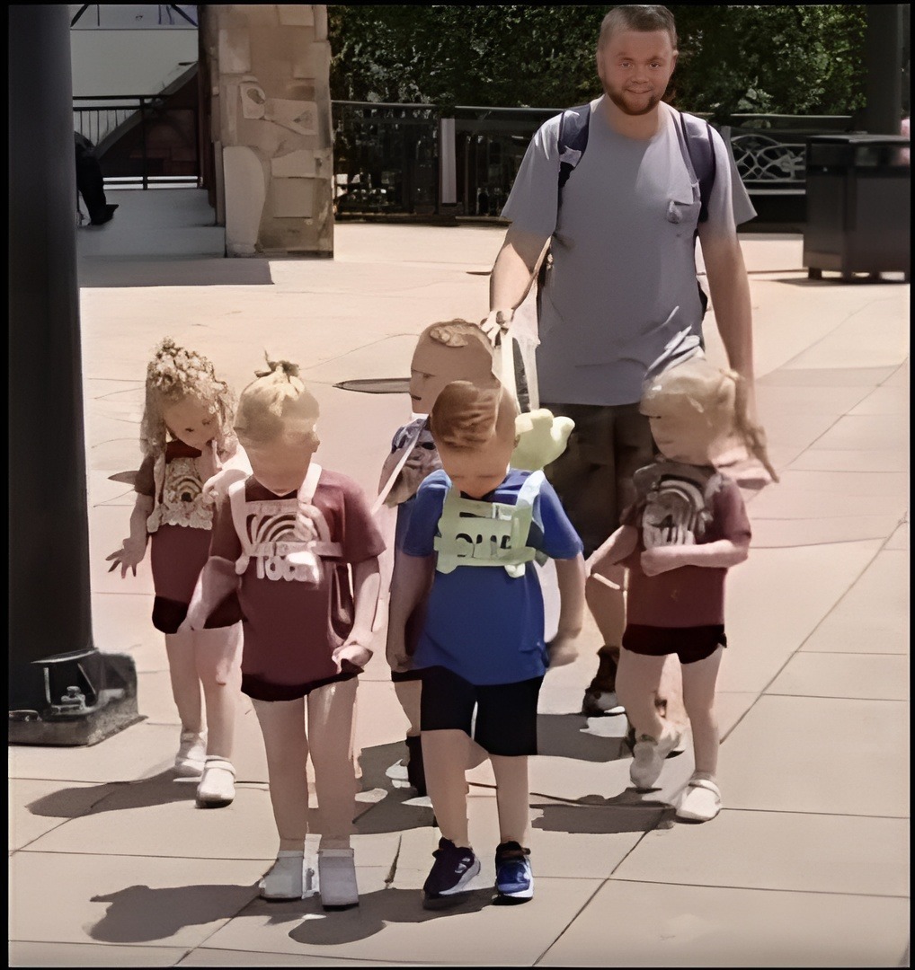 31-year-old dad, Jordan Driskell decided to find a creative solution to his problem. He bought leashes meant for children to control his rambunctuous little kids when they are in public together.