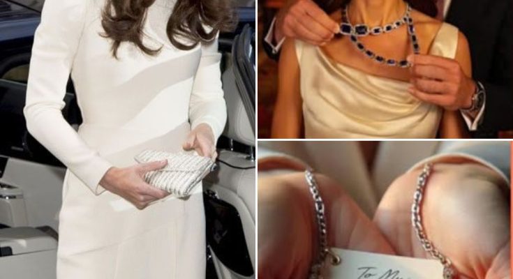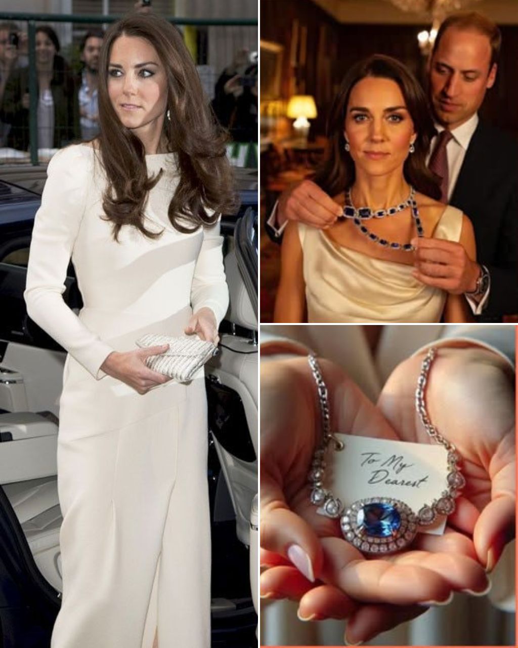 Inside, sources revealed, lay a vintage sapphire-and-diamond necklace valued at £3 million, reportedly drawn from the royal archives. Whispers suggest the exquisite piece once belonged to Princess Diana, William’s late mother — making the moment all the more poignant.