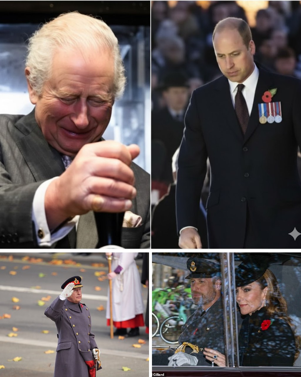 King Charles stared solemnly as he saluted in front of the Cenotaph to mark Remembrance Day