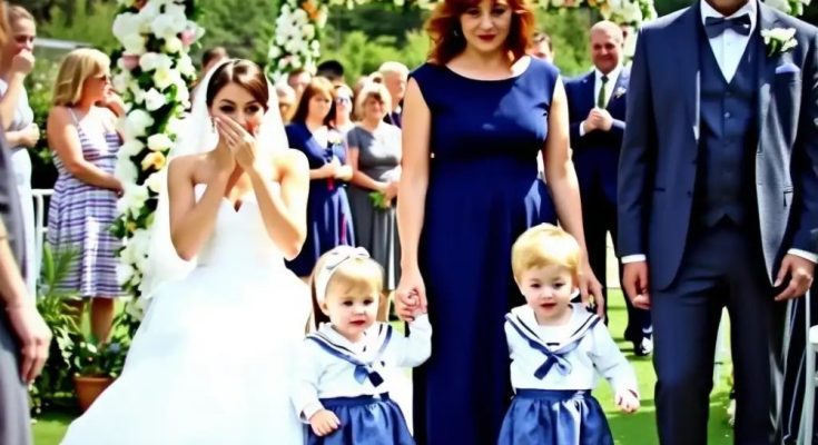 Lila entered quietly, wearing a navy-blue dress that elegantly hugged her figure. Her hair was neatly pulled back, and on either side of her were two children—one boy, one girl—both around six years old. Their faces were calm yet curious, their wide eyes observing everything with quiet wonder.