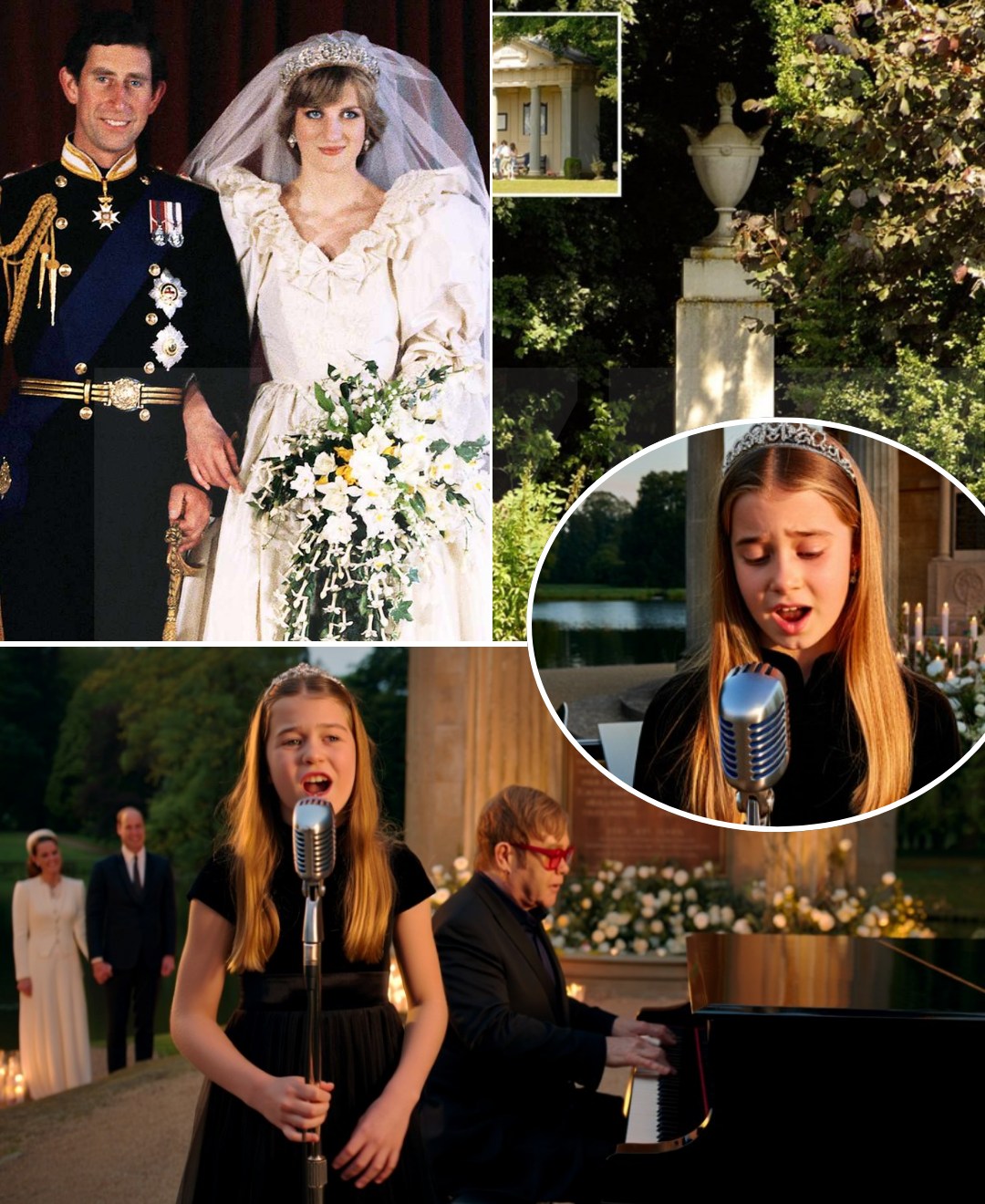 At just 10 years old, Princess Charlotte of Wales — Diana’s granddaughter — walked slowly onto the small outdoor stage in front of the Spencer family mausoleum. Dressed in a simple black dress, her golden hair cascading down her shoulders, she wore a delicate silver tiara — a subtle nod to her grandmother’s grace. By her side, seated at a grand piano, was Sir Elton John, Diana’s dear friend and the man who famously performed at her funeral in 1997.