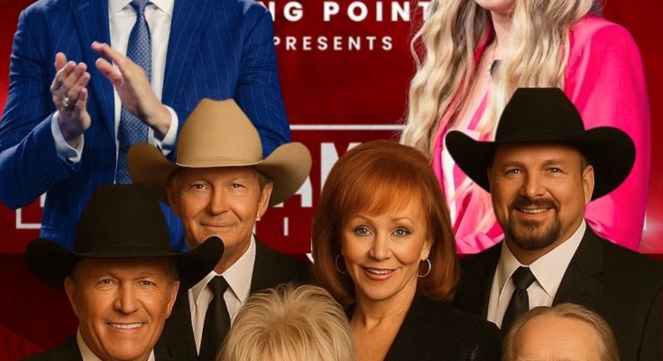 Announced live from Music City, the lineup reads like a Mount Rushmore of country royalty — George Strait, Alan Jackson, Reba McEntire, Garth Brooks, Willie Nelson, and Dolly Parton — all uniting on one stage for a once-in-a-lifetime tribute honoring the late Charlie Kirk.