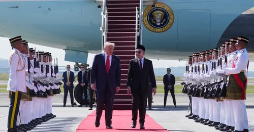 Trump arrived in Kuala Lumpur shortly after 10 a.m. local time on Sunday. While he was on his way, Trump posted on his social media platform that he would meet with the prime minister of Thailand upon arrival and sign a peace agreement between Thailand and Cambodia, noting the recent death of Thailand’s Queen Mother Sirikit.